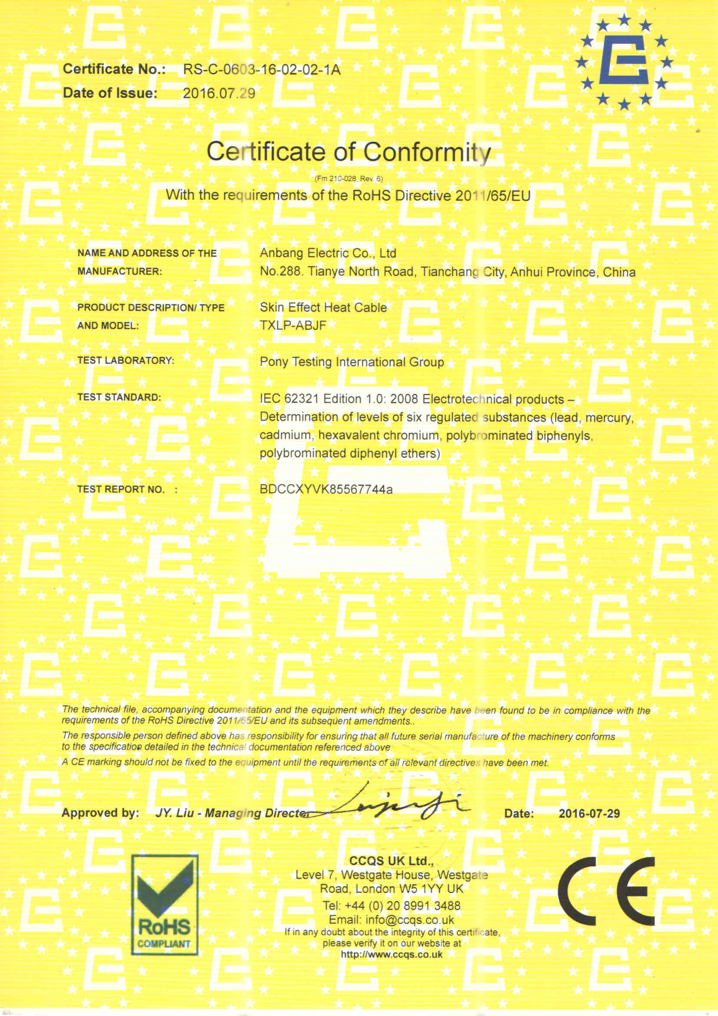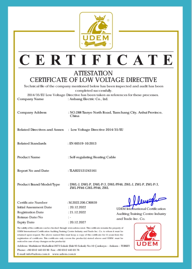 安邦電氣股份有限公司,總部位于北京市長安街,成立于2004年,注冊資金10088萬。安徽生產(chǎn)基地占地面積63000平方米,擁有66套各類生產(chǎn)線,其中進口生產(chǎn)線6套。國家高新技術型企業(yè),滁州市市長質(zhì)量獎企業(yè),專精特新“小巨人”企業(yè),擁有國家知識產(chǎn)權局授權的45項專利,其中發(fā)明專利28項 , 主筆《太陽能熱利用自限溫電熱帶安裝規(guī)范》行業(yè)標準,參編《自限溫電伴熱帶》國家標準、《工業(yè)和商業(yè)用電阻式伴熱系統(tǒng)》國家標準、《太陽能熱利用自限溫電熱帶》行業(yè)標準、《爆炸性環(huán)境 電阻式伴熱器》國家標準等7項國家標準。企業(yè)通過UL認證,國家強制性 CCC產(chǎn)品認證,ISO9001質(zhì)量管理體系認證,ISO14001環(huán)境管理體系認證,ISO45001職業(yè)健康安全管理體系認證,Q/SHS0001.1健康、安全與環(huán)境管理體系認證,歐盟防爆ATEX認證,歐盟CE認證,RoHS認證,俄羅斯海關聯(lián)盟認證,國家防爆電氣CCC證書。產(chǎn)品系列:集膚伴熱系統(tǒng)、電伴熱系統(tǒng)、電加熱器、電地暖系統(tǒng)、集儀器儀表、電線電纜、高低壓配電柜(箱)、電纜橋架、閥門管件等等設計、制造、銷售。產(chǎn)品應用于航天航空、軍工、石油、石化、天然氣、機場、化工、鋼鐵、隧道、消防、養(yǎng)殖、融雪化冰、室內(nèi)供暖、國家電網(wǎng)及眾多電廠等等國家重點工程。出口美國、英國、德國、俄羅斯、韓國、日本、哈薩克斯坦、烏克蘭、伊朗等眾多國家。